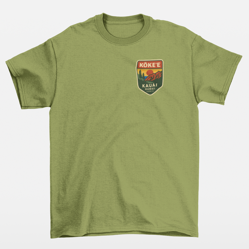 Premium soft-touch tee featuring a vintage Kōke‘e mountain badge graphic. Designed on Kaua‘i by Elephit Co. A must-have for hikers & island explorers.